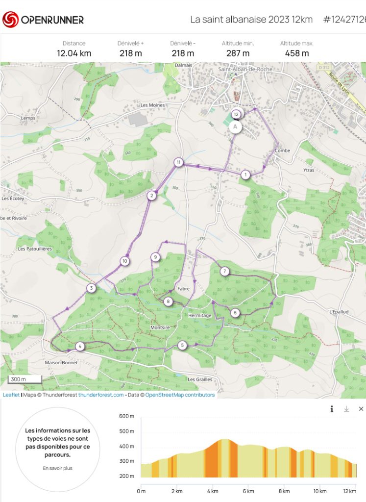Parcours du trial de 12 km pour La Saint-Albanaise